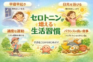 このように、セロトニンを増やす方法はいくつかありますが、やはり大切なのは「規則正しい生活習慣」です。